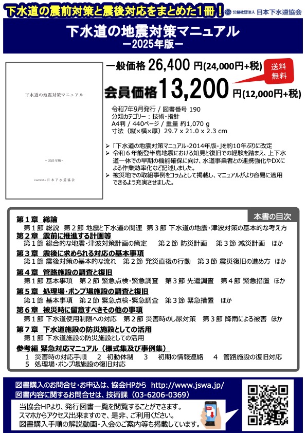本会では、このたび、下水道の地震対策マニュアル-2025年版-を発刊しました。