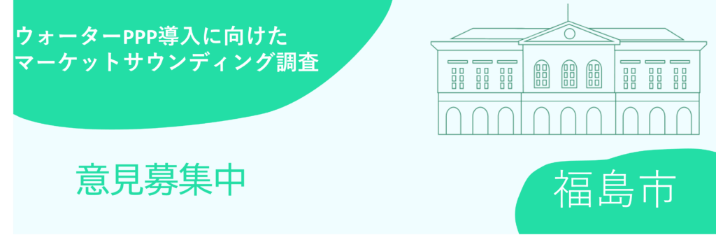 福島市では、持続可能な下水道事業を構築するため、ウォーターPPPの導入検討を進めており、民間事業者の皆様から官民連携に関する様々な意見を伺いたくマーケットサウンディング調査を実施いたします。