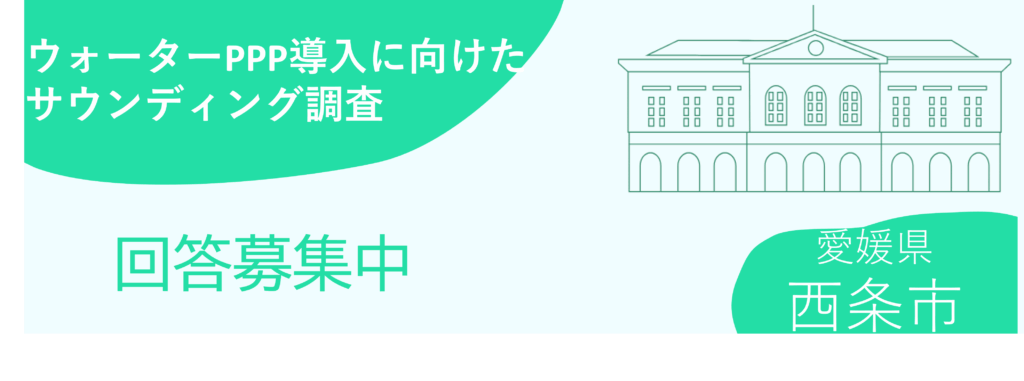 西条市の公共下水道事業において、現在抱える課題に適切に対応し、将来にわたって健全かつ安定的な下水道事業の運営を継続するための手法として、「ウォーターPPP」の導入を検討中です。この導入検討の一環として、これまでに検討してきたウォーターPPPの内容に対する民間事業者様の参入意向や事業スキームに対する考え方を把握するため、サウンディング型市場調査を実施します。