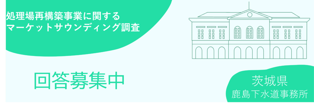 茨城県鹿島下水道事務所では、処理場再構築事業について官民連携事業の活用を検討する為、マーケットサウンディング調査を実施いたします。
