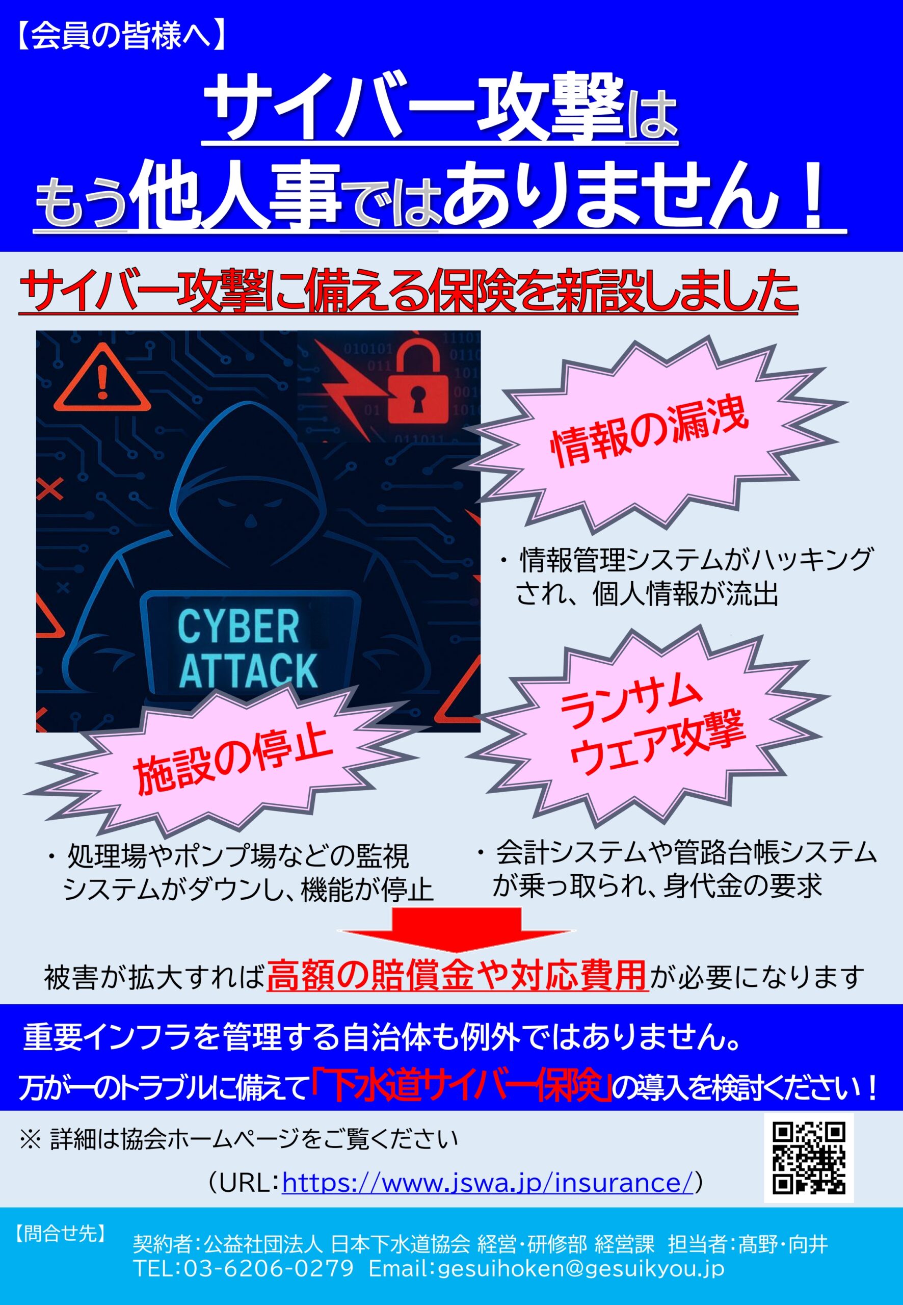 本会では、下水道賠償責任保険に加え、令和8年度から新たに 「下水道サイバー保険」 を創設しました。