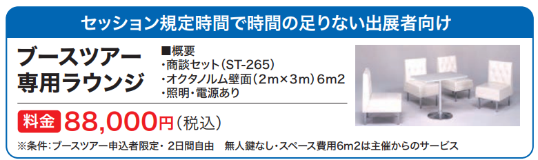 ②セッション時間をさらに充実させたい出展者向けに専用ラウンジを用意(有料)
